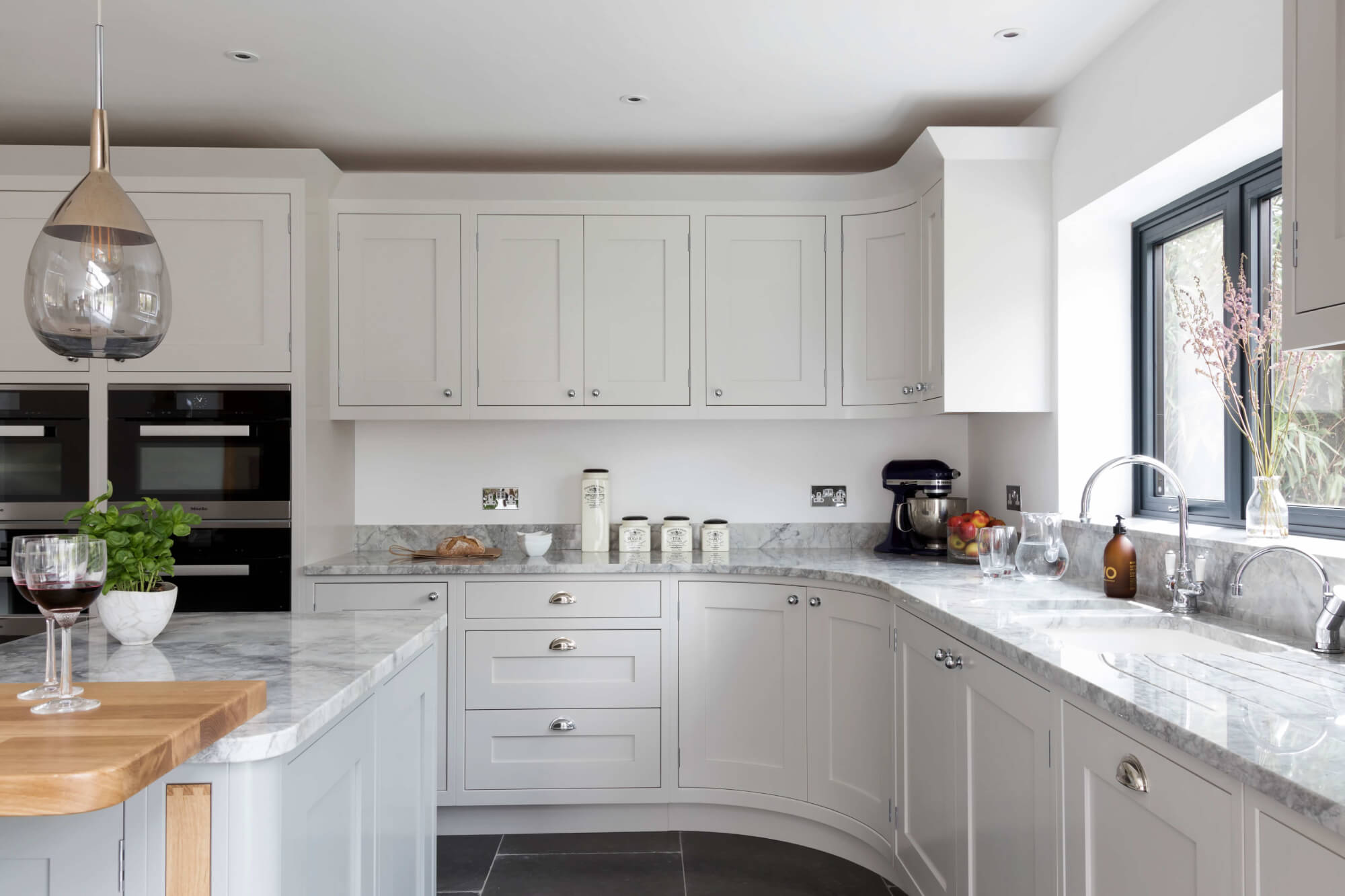We design breakfront cabinetry with soft curves and kitchen islands with curved corners. If you are opting for a linear contemporary kitchen, we can add a circular breakfast bar at one end to maximise seating space. We also create circular condiment cabinets with rotating internal shelves, so you can easily access what you need when cooking. We feature numerous examples of curved and circular cabinetry on display at our Winchester showroom. Visit us to find out more.