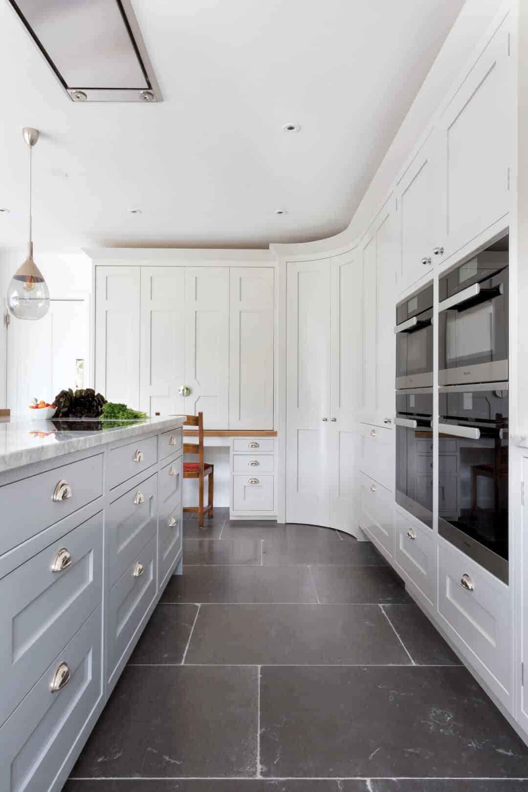 Searle & Taylor is one of very few kitchen companies in Hampshire that can design and make bespoke curved cabinetry or circular furniture. With more than 30 years of expertise, working with the finest artisan craftspeople, we specialise in this type of design and we feature a circular kitchen island at the entrance of our Winchester showroom that includes a cleverly concealed pop-up spice rack that rises from the worktop, with a pop-up TV on the reverse.