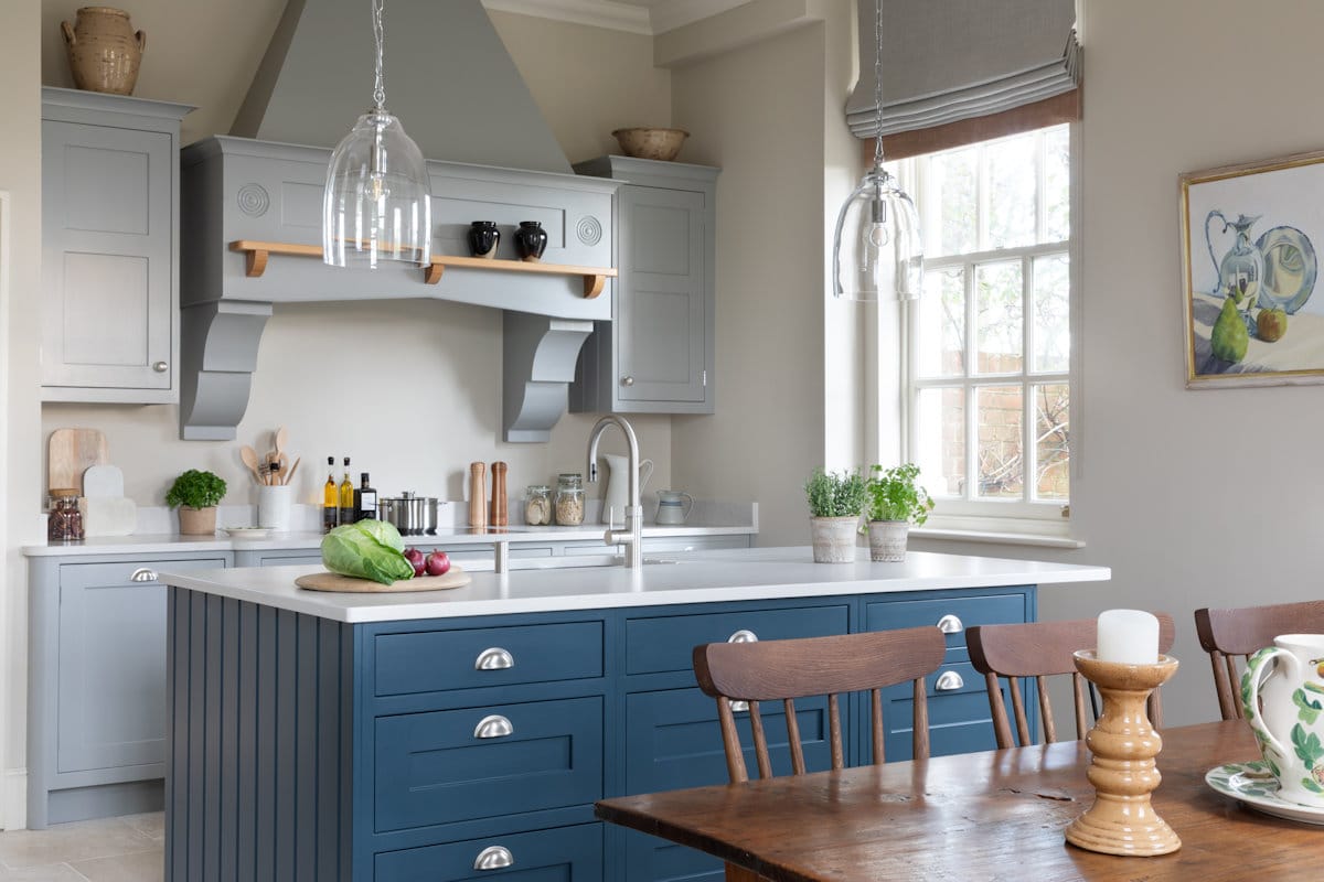 At Searle & Taylor, we have specialised in designing bespoke Shaker kitchens in Hampshire for more than 30 years, and we feature them as Classic Bespoke Shaker kitchens. They have in-frame doors and can be designed and made in any size or dimension to suit your property. They feature mortise and tenon joints and include dovetail drawer boxes, a nod to the craftsmanship of the Shakers, and can be handpainted in any colour to suit your home